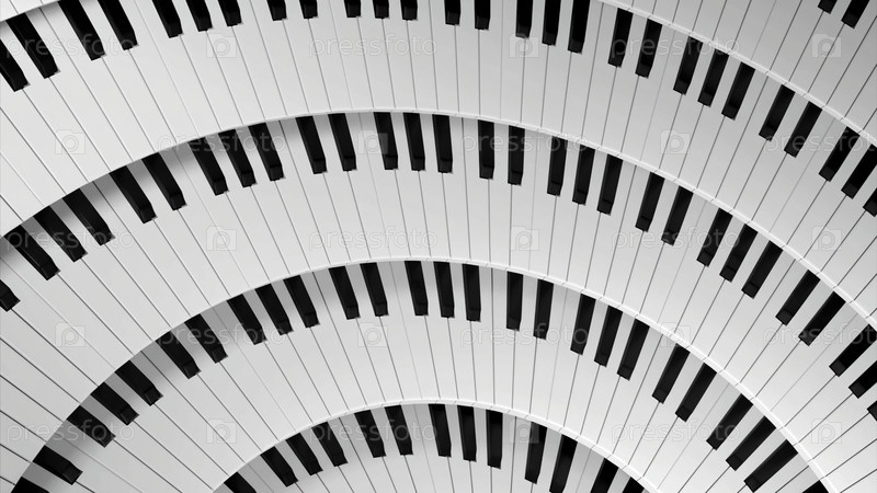 Концепция музыки, бесконечное вращающееся колесо с клавишами фортепиано. дизайн. крутящиеся изгибающиеся ряды клавиш для пианино