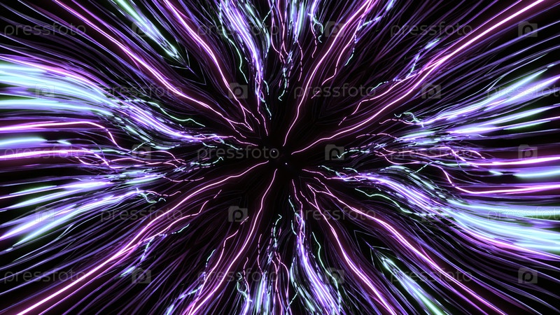 Абстрактное энергетическое ядро и распространение электрических лучей. Дизайн. Красочные заряды электроэнергии вокруг центра