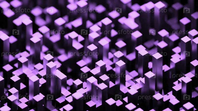 3D металлические колонны перемещаются в пространстве. Дизайн. Пространство с 3d столбами, движущимися вверх и вниз. Металлические кубические колонны передвигаются в фоновом пространстве