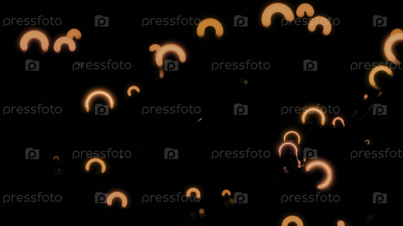 Небольшие неоновые кольца перемещаются в пространстве.Дизайн.Неоновые кольца вибрируют в космосе с волнами и отражениями.Светлые боке-кольца вибрируют в темноте