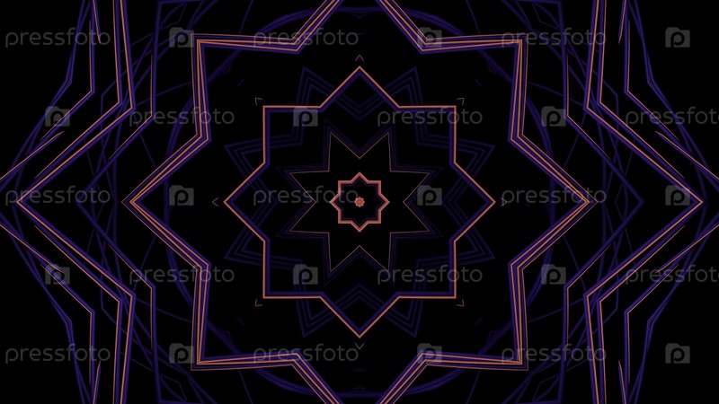 Абстрактные красочные расширяющиеся звездные силуэты на черном фоне.Дизайн.Оптическая иллюзия с геометрическими формами