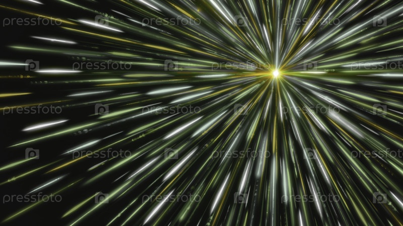 Яркая звезда излучает цветные линии. Анимация. Белая точка излучает яркие и красочные лучи в космическом пространстве. Космическая точка, которая испускает свет и линейные лучи