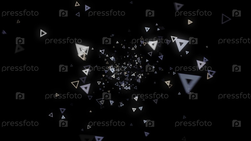Абстрактный фон многочисленных белых треугольников, хаотично плавающих на черном. анимация. компьютерное генерирование абстрактного пространства