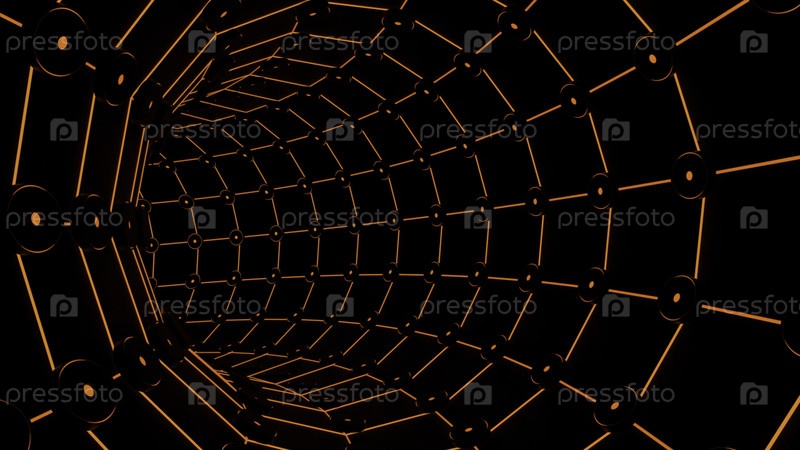 Зеленый и фиолетовый туннель.Дизайн.Яркий тоннель с освещающими линиями, который проходит изнутри в абстракции