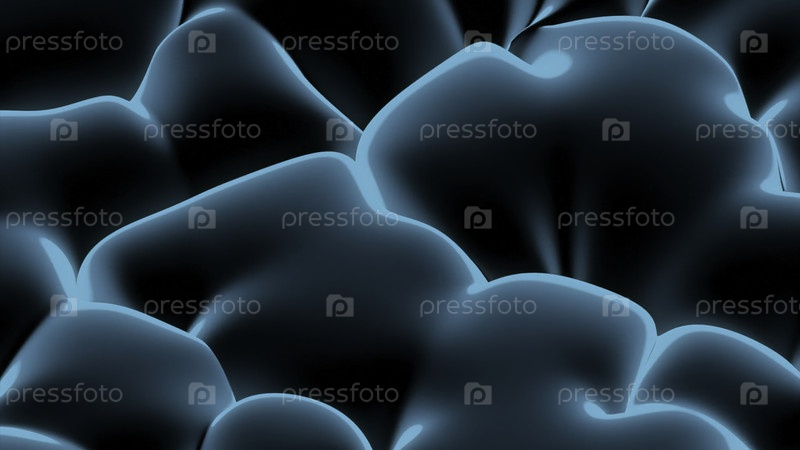 Плотно движущаяся жидкость на поверхности. Дизайн. Пузыряющаяся жидкая субстанция с молекулами на поверхности. Пузыряющаяся жидкость или поверхность ткани