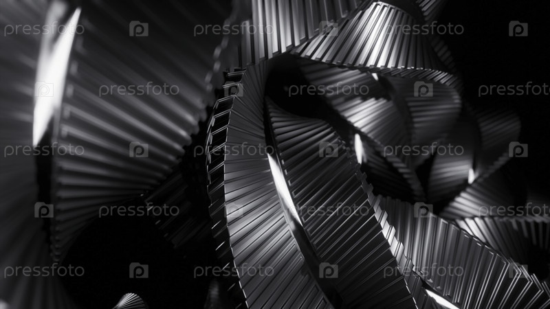 Анимация движущихся металлических линий в искривленной спирали. Дизайн. 3D-спираль, произвольно скручивающаяся из металлических линий. Абстрактная запутанная спирала с металлическими 3d-линиями