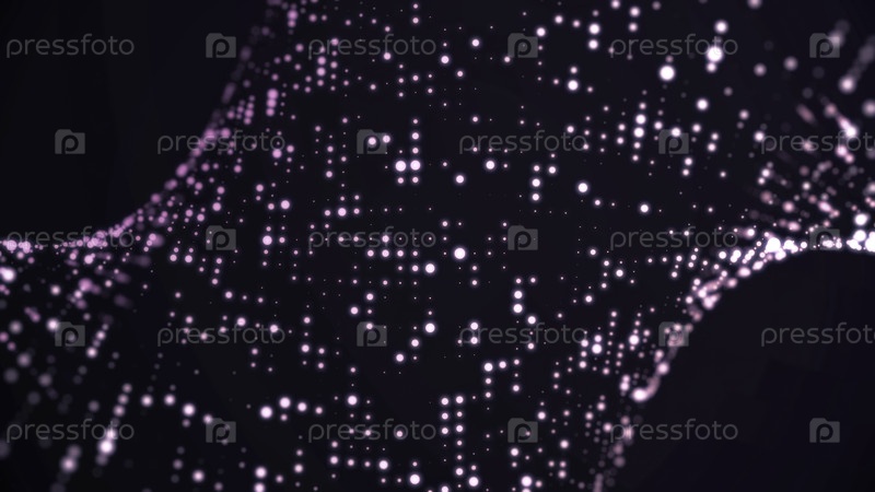 Анимационный фон движущихся частиц. Плавающие точки света на фиолетовом фоне. Концепция пространства