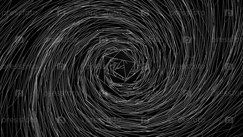 Абстрактный спиральный туннель, вращающийся с узкими неоновыми белыми линиями в виде треугольников в центре, бесшовная петля