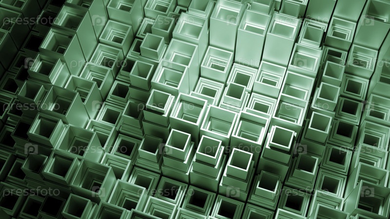 Круговые волны геометрической поверхности. Дизайн. Волны квадратных столбцов в матричном пространстве. Квадратные столбцы движутся по круговому импульсу в компьютерном стиле