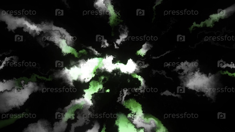 Флуоресцентная синяя чернила или дымообразующая звезда изолирована на черном фоне.Движение.Распространение дыма по всему экрану