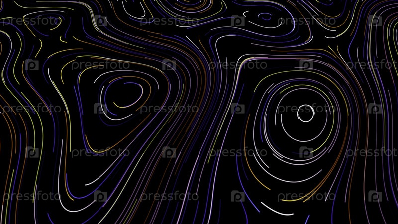 Движение. Абстрактная контурная тонкая аппликация, которая блестит в разных цветах: ярко-желтый белый и фиолетовый и синий