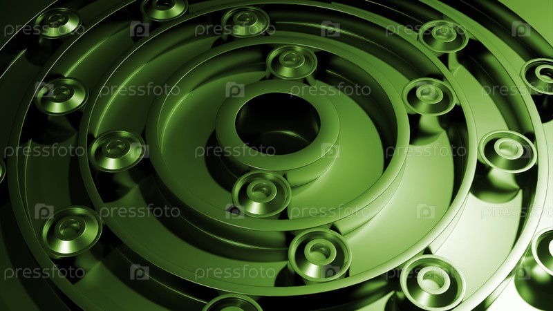 Зеленый и бирюзовый фон насыщенных оттенков. дизайн. лабиринт со многими дорогами, вдоль которых движутся круги, сделанные в 3D-формате