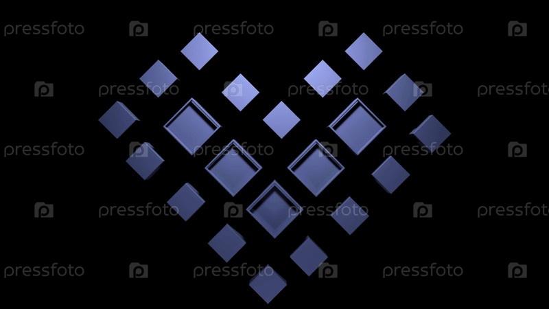 Абстрактная форма сердца, созданная синими ромбами.Дизайн.Геометрическая фигура изолирована на черном фоне
