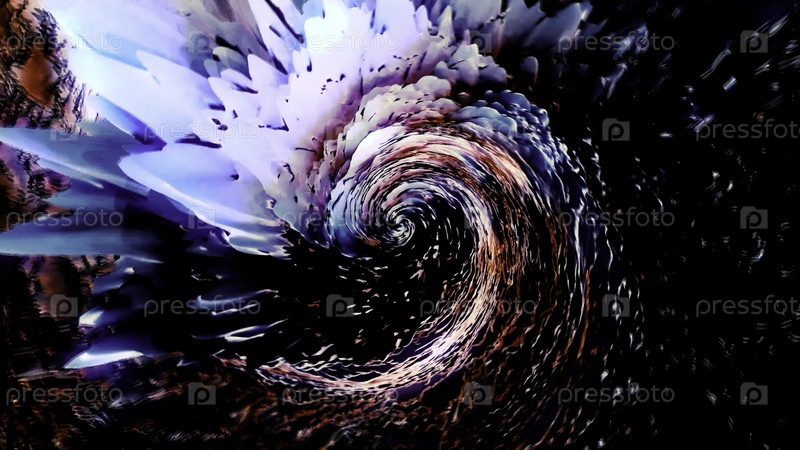 Абстрактный жидкий ураган, медленно вращающийся, вид сверху. Движение. Волна похожа на вихревую спираль синих и красных цветов с 3D-эффектом, бесшовная петля