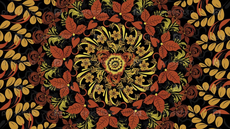 Хохлома. абстрактное фрактальное фоновое преобразование. Loopable. живопись Khokhloma Россия ярко-красные цвета и ягоды на черном и золотом фоне. абстрактный фон красных многоугольников