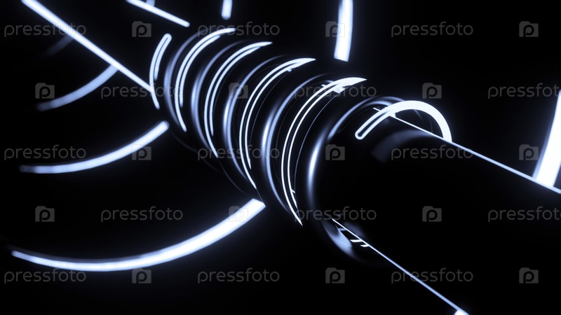 Абстрактные голубые изгибающие металлические трубы на черном фоне.Дизайн.Анимированный промышленный фон