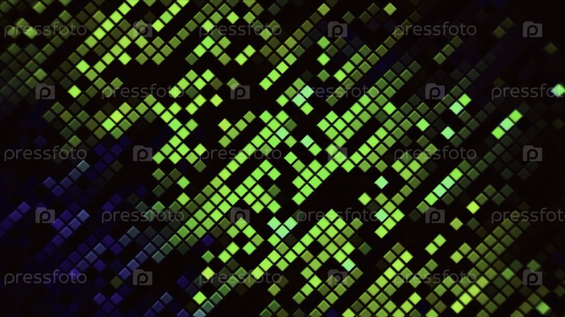 Анимационный фон с движением светящихся мозаичных плиток, бесшовная петля. дизайн. мигающие квадраты со светлым светом, концепция вечеринки и танцпола
