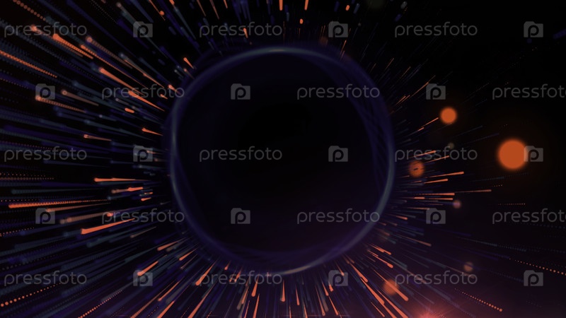 Абстрактная черная дыра, окруженная летающими звездами.Движение.Сверхмассивные черные дыры в космосе и летящие астероиды