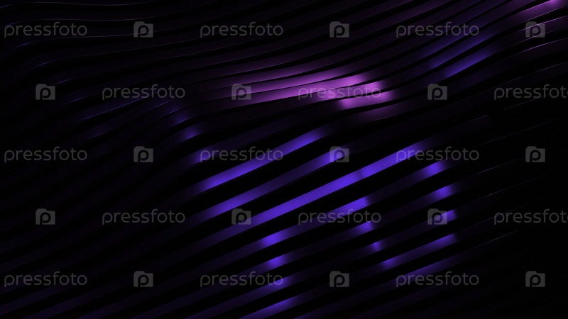 Полосатый фон перемещается волнами и меняет цвет. Дизайн. Шелковые полосы движутся в 3D-волнах с цветовым блеском. 3D-волны движущихся шелковых полос на черном фоне