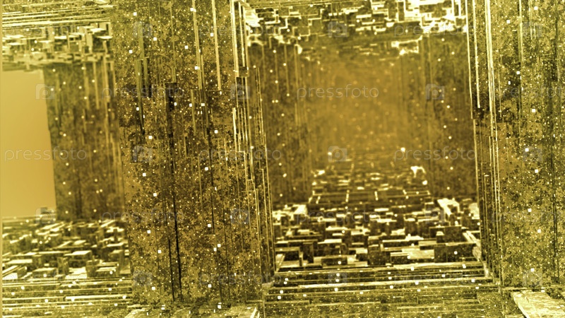 Гипнотический трёхмерный туннель в лабиринте. Движение. Погружение в трехмерное пространство квадратного лабиринта с переходами. Многоуровневый тоннель в 3D-лабиринте квадратов