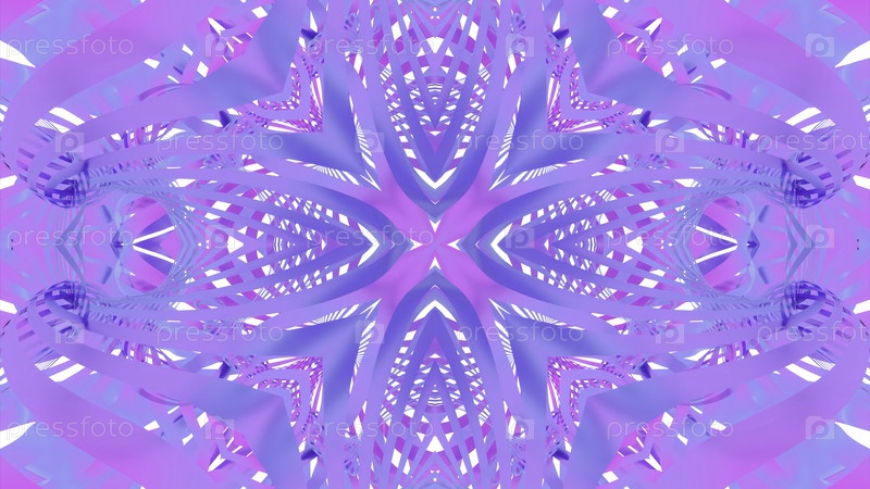 3D анимированное движение через освещенный, крестообразный научно-фантастический туннель. Дизайн. Спокойный и расслабляющий мандальный рисунок