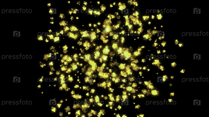 Блестящие цветные стеклянные частицы, летящие изолированно на черном фоне.Движение.Красивые отражающие крошечные точки