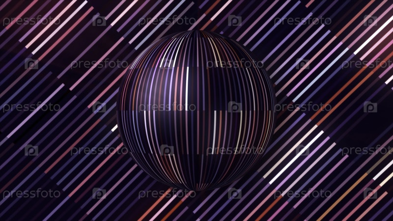 Праздничный мяч с блестящими линиями. Движение. Красивый фон со светлыми линиями и вращающимся шаром. Праздничная анимация дискотечного шара с искрящимися линиями и штрихами