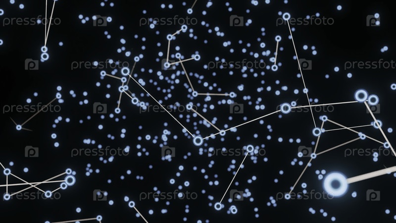 Цепи молекул в потоке. дизайн. переплетение частиц в движущемся потоке. поток светящихся молекул с изменяющимися связями биологических цепей