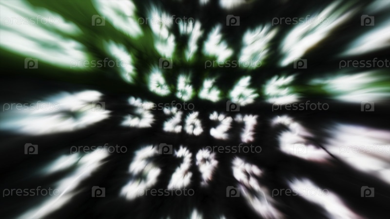 Яркие числа, появляющиеся в виртуальном пространстве. Движение. Яркие светящиеся цифры появляются в потоке странствующего компьютера. Ужасные светящиеся номера с искажением