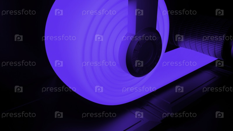 Голубой фон в анимации мультфильмов. Дизайн. Разворачивание длинной ленты, которая помещается на специальное устройство
