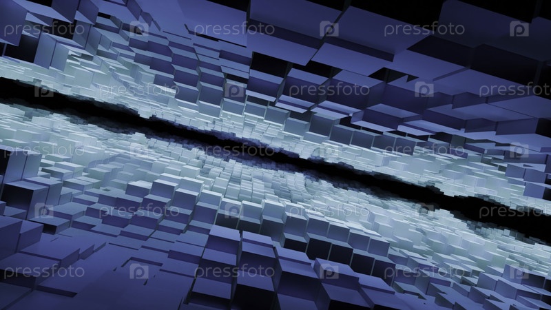 Абстрактные синие блоки, образующие цифровой ландшафт