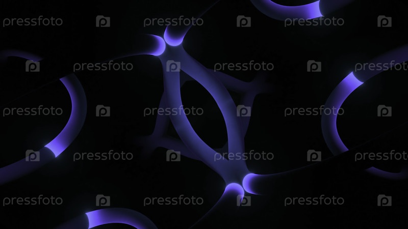 Кибертубы с неонными импульсами. Дизайн. 3D-линии с движущимися потоками световых импульсов. Светящиеся импульсы передвигаются в кибертубах на черном фоне