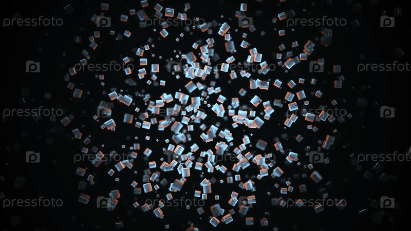 Абстрактная анимация небольших неоновых многоцветных 3D-частиц, плавающих медленно на черном фоне