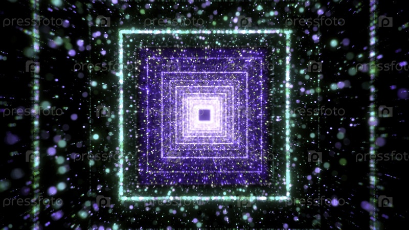 Переход к абстракции. Движение. Яркий туннель с геометрическими яркими фигурами повсюду движется внутрь в абстракции