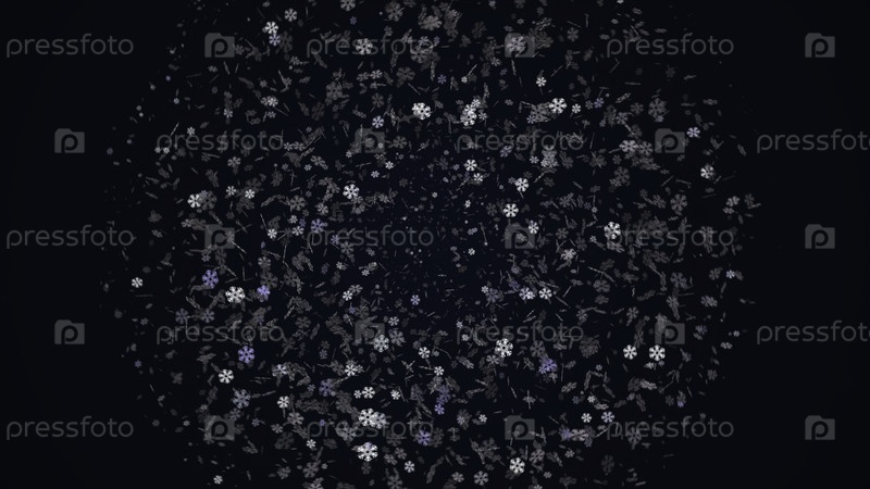 Абстрактный анимированный рождественский фон с красивыми блестящими снежинками, вращающимися на красочном фоне