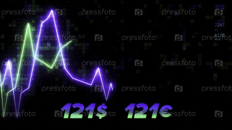 Диаграмма валют. движение. скачущий курс доллара и евро показан яркими неоновыми линиями на графике в абстракции