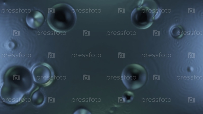 Абстрактные зеленые капли кислотного дождя. Дизайн. Красочные падающие капли жидкости, вид сверху