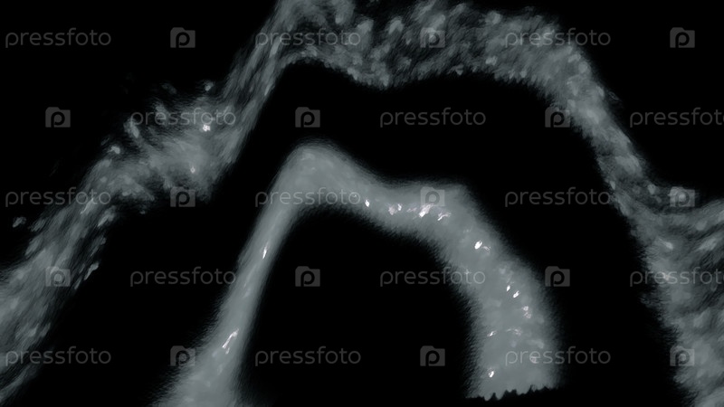 Медленное движение объемных серых арочных форм.Движение. Вертикальные размытые светящиеся полосы и пятна чернил