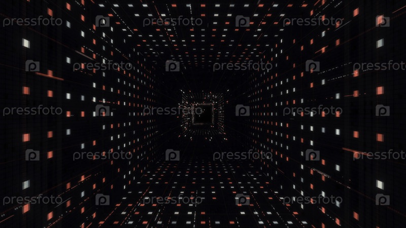 Красивый красочный туннель.Анимация.Гипнотическая абстрактная анимация голографического коридора или тоннеля с неоновыми геометрическими узорами и линиями, движущимися на черном фоне