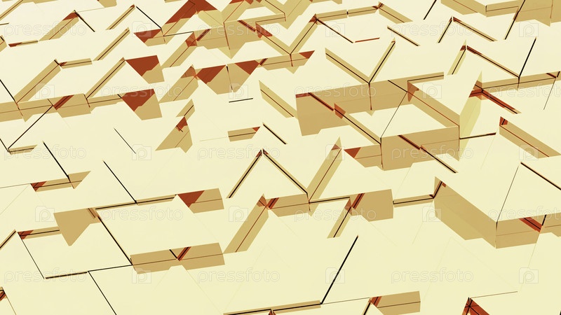 3D-поверхность с движущимися треугольниками. Дизайн. Треугольники выталкиваются волнами на поверхности. Геометрическая поверхность треугольников с вибрациями и движениями