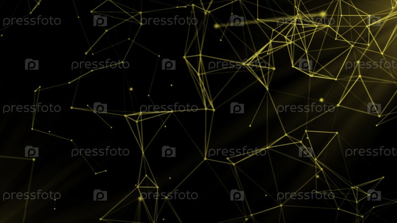 Желтый и серый фон.Движение.Тонкие частицы, которые взаимосвязаны друг с другом, вращаются в абстракции