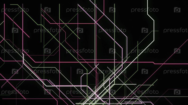 Абстрактные многоцветные перекрестные и изгибающие балки, изолированные на черном фоне.Дизайн трубопровода, множество соединений красочных линий