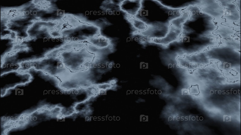 Абстрактный таинственный туман, распространяющийся на черном фоне. Дизайн. Светло-синие движущиеся облака
