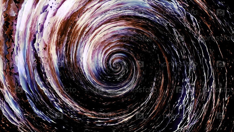 Абстрактный жидкий ураган, медленно вращающийся, вид сверху. Движение. Волна похожа на вихревую спираль синих и красных цветов с 3D-эффектом, бесшовная петля