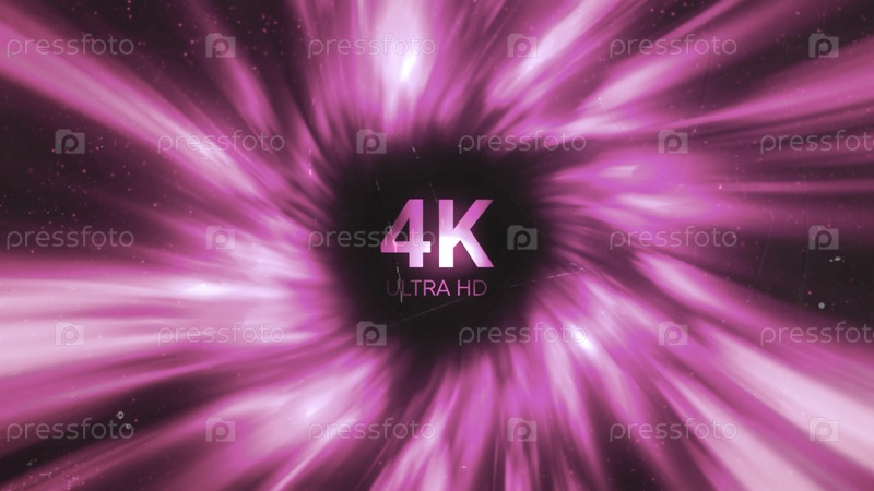 Анимация с знаком 4K. Движение. Световой круглый поток лучей со знаком 4K в центре. Анимация для отображения качества видео в разрешении 4K