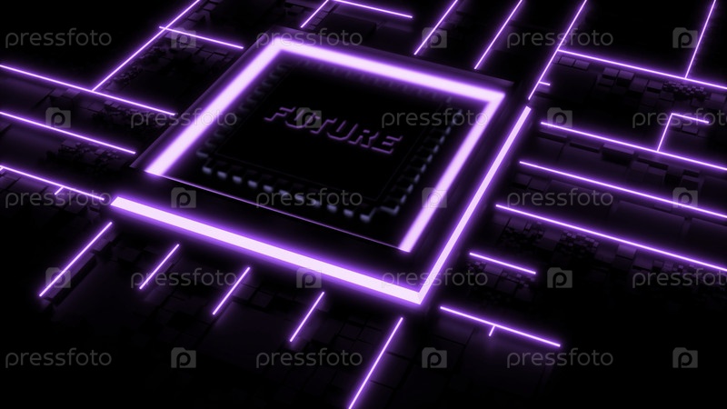 Абстрактный микрочип со словом будущее.Дизайн.Визуализация современной платы электрических цепей
