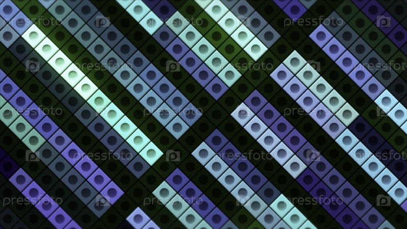 Конструктор в абстракции. Движение. Яркие фигуры разных цветов мерцают в различных оттенках и меняют цвета по очереди