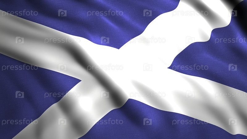 Красивое полотно с национальным флагом. Движение. 3D-фонд со знаменем, размахивающимся на ветре. 3D-анимация движущегося текстильного флага Шотландии