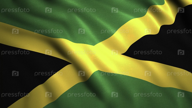 Фон яркого размахивающегося флага. Движение. Красивая 3D-анимация с волнами на холсте размахивающегося флага страны. Размахающий холст флага Ямайки