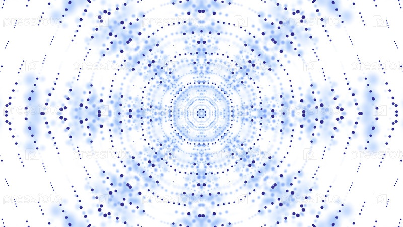 Гипнотический круговой рисунок, движущийся из точек. Дизайн. Точки передвигаются в геометрически круглом узоре. Калейдоскопическая картина точек на белом фоне